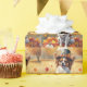 Un tableau aquarelle d'un chien gai assis au milieu d'un tas de feuilles d'automne vibrantes, entouré de minuscules citrouilles et de glands épars. Le chien porte un petit casquette pèlerin et des poutres de joie, capturant l'esprit de Thanksgiving. Dans l'arrière - plan, les champs de moissons et les arbres dorés créent une ambiance campagnarde paisible. Des textures douces et des tons d'automne chauds et feutrés confèrent à la scène une atmosphère cosy et nostalgique parfaite pour célébrer la beauté de la saison.