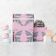Elégant papier d'emballage design motif papillon sur arrière - plan rose, parfait pour l'emballage cadeau d'anniversaire et toute autre occasion!
