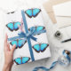 Papier cadeau Papillon bleu vif pour anniversaires, baby showers ou Noël.
