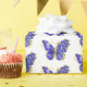 Bijoux, bleu, saphir, papillon aux fleurs pétillantes avec aile décorée de bleu, fleurs précieuses avec feuilles d'or sur arrière - plan blanc.