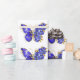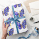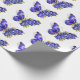 Bijoux, bleu, saphir, papillon aux fleurs pétillantes avec aile décorée de bleu, fleurs précieuses avec feuilles d'or sur arrière - plan blanc.