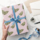 Papier Cadeau Papillons de bijou d'or sur pâle - rose