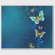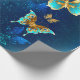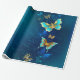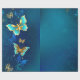 Papier Cadeau Papillons d'or sur un Arrière - plan bleu