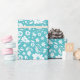 Motif floral blanc avec papillons sur un arrière - plan turquoise.
