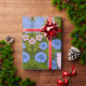Papier Cadeau Papillons et symétrie des fleurs, bleu et rose
