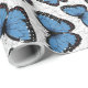 Design motif sans couture avec papillons morpho bleu sur hydrangea fleurs en lin arrière - plan.