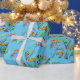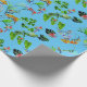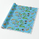 Le papier d'emballage coloré présente un éventail d'oiseaux tropicaux d'aquarelle, de fleurs et de plantes sur un arrière - plan bleu clair