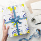 Beau papier d'enveloppement Baby shower. Bébé mignon Jaune Ducky avec parapluie bleu marine et rubans rose, bleu et jaune accrochés au parapluie. Le parapluie a fantaisie noir blanc bouton et garniture. Avec le libellé à l'intérieur du parapluie, Sweet Baby sur le chemin. Personnalisez avec le baby shower de nom de maman-to-be. Très agréable pour bébé garçon ou petite fille sur le chemin. Oeuvre originale de TamiraZDesigns.
