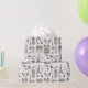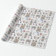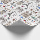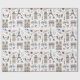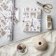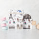 L'enveloppement de cadeau Whimsical est un motif dessiné à la main qui présente des doodles de tout Paris, de la Tour Eiffel à l'Arc de Triomphe en passant par les chaises bistrot et les macarons.