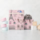 L'enveloppement de cadeau Whimsical est un motif dessiné à la main qui présente des doodles de tout Paris, de la Tour Eiffel à l'Arc de Triomphe en passant par les chaises bistrot et les macarons en arrière - plan rose pastel.