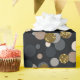 Un motif de confettis aléatoires pointe dans une palette pastel, brun érable et gris, avec parties scintillant d'or sur un arrière - plan foncé.
