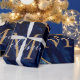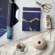 Papier Cadeau Parties scintillant d'or bleu Monogramme Nom Papie