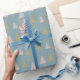 Papier Cadeau Parties scintillant d'or gris bleu brillant arbres