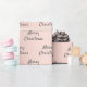Elégant, classique, glamour et de style féminin papier d'emballage de fête. Un arrière - plan à l'aspect feuillu rose ceinturé, rose d'or faux métallique, décoré de gouttes d'or et de parties scintillant d'argent faux rose. Le texte : Joyeux Noël est écrit avec un script de style moderne écrit à la main. Lettres grises.