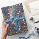Papier Cadeau Parties scintillant dorée et étoiles bleues scinti
