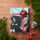 This simple wrapping paper has an abstract triangle pattern that features pink, grey, blue, and black colors.