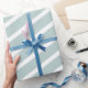 Pastel Bleu Blanc Diagonal Motif papier enveloppement cadeau est approprié pour des vacances comme Noël, le nouvel an, ou baby showers en l'honneur d'un garçon venant dans ce monde et sa mère.