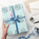 Papier Cadeau pastel bleu glacé élégant sapins de Noël