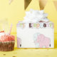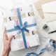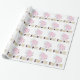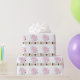 Envelopper le papier avec un motif carrelé d'éléphants roses et bleus avec le mot "éléphants" imprimé en dessous. Parfait pour envelopper un cadeau baby shower !