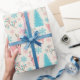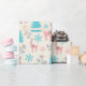 "Pastel Pink Reindeer Blue Pine Trees Snowflakes Wrapping Paper" rassemble des rennes pastel, des flocons de neige et des arbres aux accents de baies pour un design de papier d'emballage calme mais festif.