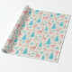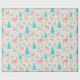 Papier Cadeau Pastel Pink Reindeer Blue Pine Trees de neige