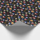 Papier d'emballage cadeau personnalisé de noël, auquel vous pouvez ajouter une répétition à ou à partir du message. Le design a un motif de vacances festif de patins à glace, bonhomme de neige conduisant un traîneau, maison de pain d'épice, tasse de cacao et casquette d'hiver.