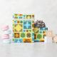 Patterned tiles on birthday wrapping paper. Use "Personalize this template" to change the "Happy Birthday Sam! Best Brother Ever" name & relationship text and create a unique, customized paper. Add a personal touch to your gift wrapping with this bold and colorful pattern featuring decorative tiles of various sizes and varied patterns. Black designs on faded orange, green, blue and yellow backgrounds. All patterns were designed and drawn by me and are inspired by Celtic and Mughal design.