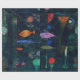 Cette célèbre peinture est de l'artiste abstrait Paul Klee, bauhaus, qui présente le modernisme avec des poissons abstraits nageant à travers un océan bleu noir. Un art graphique abstrait la peinture expressionniste.