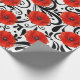 Papier Cadeau Pavot Rouge Fleur Noir Blanc Glam Stripes Chic