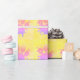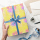 Empreinte de patte de chien de style dessin animé mignon avec effets de texture en papier vieilli et en détresse. Rouleau personnalisé de papier d'emballage. Idéal pour la décoration de fête de chien. Jaune, rose et violet. Idée d'enveloppement cadeau pour les amoureux de les chiens de tous âges.