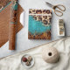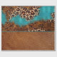 Ce design présente des éléments en faux cuir avec marbre turquoise et empreinte de léopard avec du faux cuir marron.