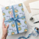 Papier Cadeau Pêcher bleu clair Mariage Roses Floral