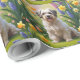 Un chien gai s'installe paisiblement sur une pelouse verdoyante, entourée de fleurs printanières colorées sous un ciel bleu doux. Cette peinture à l'huile numérique saisit un moment de sérénité avec des coups de pinceau expressifs, des couleurs chaudes et un sentiment de joie douce.