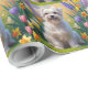 Un chien gai s'installe paisiblement sur une pelouse verdoyante, entourée de fleurs printanières colorées sous un ciel bleu doux. Cette peinture à l'huile numérique saisit un moment de sérénité avec des coups de pinceau expressifs, des couleurs chaudes et un sentiment de joie douce.
