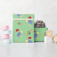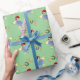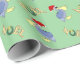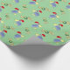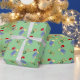 Partagez une certaine acclamation du sud de vacances cette saison avec ce papier d'emballage comportant un pélican mignon portant un casquette de Père Noël et le mot "Noel" avec une guirlande pour la lettre "O" sur un arrière - plan vert gai.