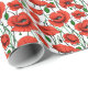 Envelopper le papier dans un motif délicat de coquelicots rouges vibrants avec des tiges vertes profondes et des feuilles, sur un certain temps arrière - plan, avec, chaque fleur de pavot unique courbé et tordu, comme si se balançant doucement dans la brise.