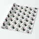 Un chat noir portant un chapeau de Père Noël tient une branche à feuillage persistant avec un oiseau cardinal rouge sur ce papier d'emballage de vacances.