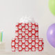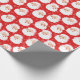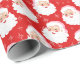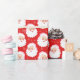 Des illustrations de style vintage d'un visage de Père Noël portant un chapeau de Père Noël rose sont dressées contre un arrière - plan rouge à motifs sur ce papier d'emballage à l'allure rétro.