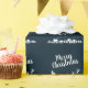 Cet élégant papier d'emballage de Noël bleu foncé présente la silhouette de Père Noël traîneau à chiens avec ses rennes, volant au-dessus des maisons dans une traînée d'étoiles. Le texte, dans une police blanche élégante, est entièrement personnalisable.