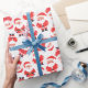 Un joli rouleau de papier d'emballage blanc qui comprend de nombreuses versions de claus jolly santa et de noël père. Cette conception contient A.I.