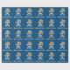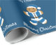 Papier enveloppant avec un Père Noël en pain d'épices souriant, en costume bleu, et les mots "Joyeux Noël". Les mots peuvent être customisés comme vous voulez. Joyeux Noël!