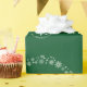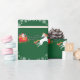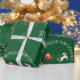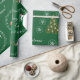 Elégant et mignon papier d'emballage de Noël personnalisé avec Père Noël dans son traîneau tiré par une licorne avec parties scintillant dorée et rouge dans sa crinière et sa queue, divers flocons de neige, et des arbres de Noël décorés de billes d'argent. Parfait pour les petits enfants, surtout les petites filles qui aiment les licornes. Avec l'accueil "Joyeux Noël / Emma !" en écriture cursive / calligraphie. Assurez-vous de personnaliser le nom. Sur un arrière - plan vert de Noël.