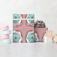 Ce papier d'emballage personnalisé de style festif et rétro présente un cadre extérieur avec un sucre de canne tourbillonné rouge et blanc à la menthe poivrée. L'expression spéciale "Sceau officiel du pôle Nord" est imprimée en haut. Un nom personnalisé est imprimé en haut, que vous pouvez personnaliser pour inclure le nom ou le destinataire de votre enfant. "From Père Noël" est imprimé dans la partie inférieure avec les lettres du nom "Père Noël" imprimées dans une police de style Noël. Le colis expédié est imprimé ci-dessous sur un arrière - plan de couleur turquoise. Rudolph les bois de rennes et le nez rouge sont imprimés dans le dos. L'arrière - plan est de couleur rose bubblegum clair avec des rayures turquoises ou à broches aqua.