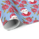 Papier Cadeau Père Noël Poinsettia traditionnel Bleu Rouge Noël