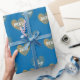 Papier Cadeau Personnalisé Deux Coeurs d'Or, Français Bleu
