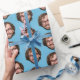 Un papier d'emballage personnalisé amusant avec votre photo personnalisée. Cette conception de papier d'emballage personnalisé visage est une belle façon de personnaliser vos cadeaux et cadeaux. Papier d'emballage personnalisé amusant et mignon avec arrière - plan bleu. Customisez le visage et faites votre propre papier d'emballage de visage amusant.