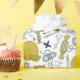 Meilleure idée amusante comment envelopper un cadeau à votre enseignant ou à vos enfants préférés pour un événement de retour à l'école. Le design comprend des petites choses scolaires - casquette, sac, montre, bonbon, arc, cravate, symbole musical et note, pomme et cerise en vert olive, noir et bleu clair sur arrière - plan blanc. Bon emballage !