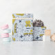 Meilleure idée amusante comment envelopper un cadeau à votre enseignant ou à vos enfants préférés pour un événement de retour à l'école. Le design comprend des petites choses scolaires - casquette, sac, montre, bonbon, arc, cravate, symbole musical et note, pomme et cerise en vert olive, noir et blanc sur arrière - plan bleu clair. Bon emballage !