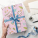 Papier Cadeau Petits singes mignons avec bananes et feuilles ros