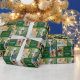 Ce joli papier d'emballage Joyeux Noël moderne présente une présentation classe de 4 photos de chien sur un arrière - plan blanc avec une jolie typographie dorée et un vert festif. Ce joli emballage cadeau de vacances photo animal de compagnie présente le collage photo de votre propre chiot entourant votre message et votre nom de famille.